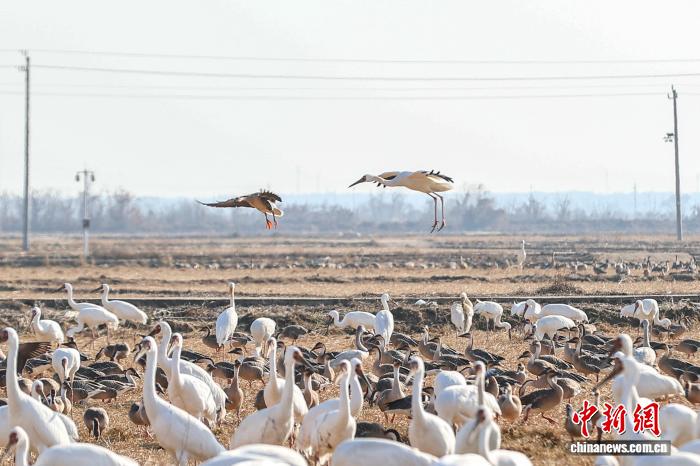 江西余干:鄱阳湖畔越冬候鸟翔集 群鸟共舞绘就生态画卷